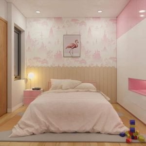 Khác với sự kín đáo và cầu kỳ trong cách lựa chọn, sắp đặt nội thất như phòng ngủ của người lớn. Phòng trẻ em tập trung vào sự an toàn và chức năng sử dụng của đồ nội thất. Không gian không quá cầu kỳ nhưng được chú trọng trong việc lựa chọn đồ nội thất với đủ các chức năng phục vụ nhu cầu sử dụng đa dạng và hiếu động, thích khám phá của các bạn nhỏ. Trong quá trình thi công nội thất phòng ngủ cho các bé, chúng tôi phải có kế hoạch sắp đặt và có sự tính toán tiên liệu về khả năng gây hại cho các bé trước khi tiến hành lắp đặt cụ thể các hạng mục.