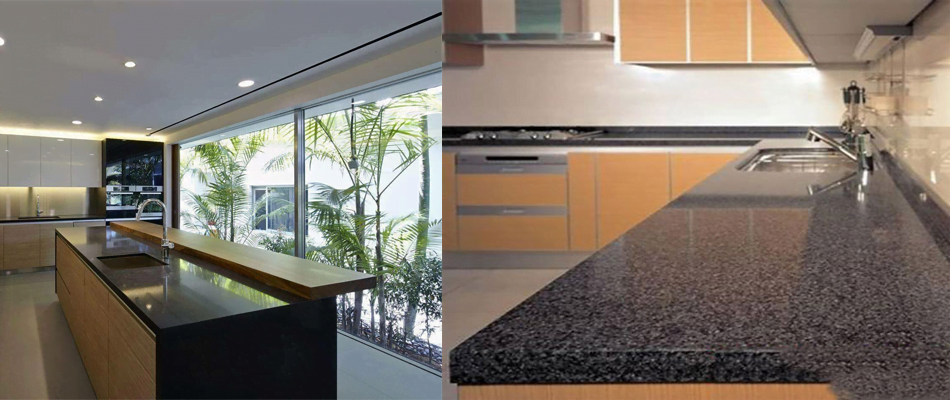 1. Mặt bàn bếp làm từ đá tự nhiên kim sa đen